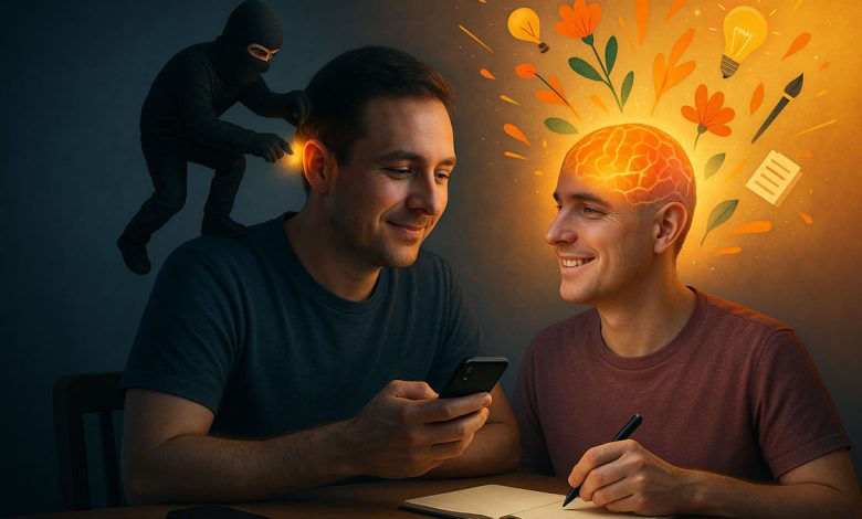 Toch wordt die motor tegenwoordig systematisch kapotgemaakt. Jouw creativiteitskracht wordt elke dag zwakker. Dit komt doordat je in een wereld leeft die constant je aandacht probeert te kapen. Elke app, elke melding, elke video is ontworpen om één ding te doen: je focus stelen.