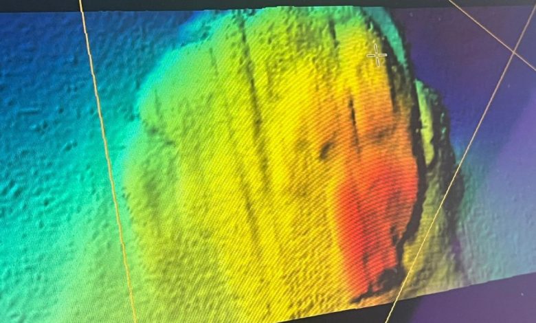 These are two multibeam sonar images of the Baltic Sea Anomaly, recorded in 2025.