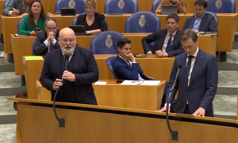 “Sectoren die maar een klein deel van onze economie uitmaken en die zowel sociaal als ecologisch zeer belastend zijn, zoals de intensieve veehouderij en de glastuinbouw, zullen moeten worden verkleind. Of verplaatst naar oorden buiten Nederland waar de belasting veel minder is,” stelde Timmermans onomwonden.