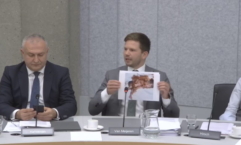 Het Kamerlid liet vervolgens een foto zien van een geaborteerde baby van 22 weken, waarna de camera snel wegdraaide en voorzitter Eric van der Burg, die Esther Ouwehand in de Kamer uitschold voor ‘kutwijf’, meteen ingreep: “Nee, nee, nee, dat gaan we niet doen. Die gaat nu weg en anders ontneem ik u het woord! We hebben afgesproken dat we dit soort dingen niet doen. U doet het toch, ik ontneem u het woord.”