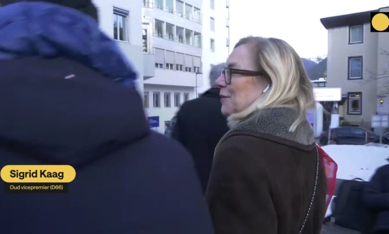 Voormalig D66-leider Sigrid Kaag is “voor wat werk” in Davos, vertelde ze aan journalist Jonathan Krispijn, die voor LightHouseTV verslag doet van het World Economic Forum.
